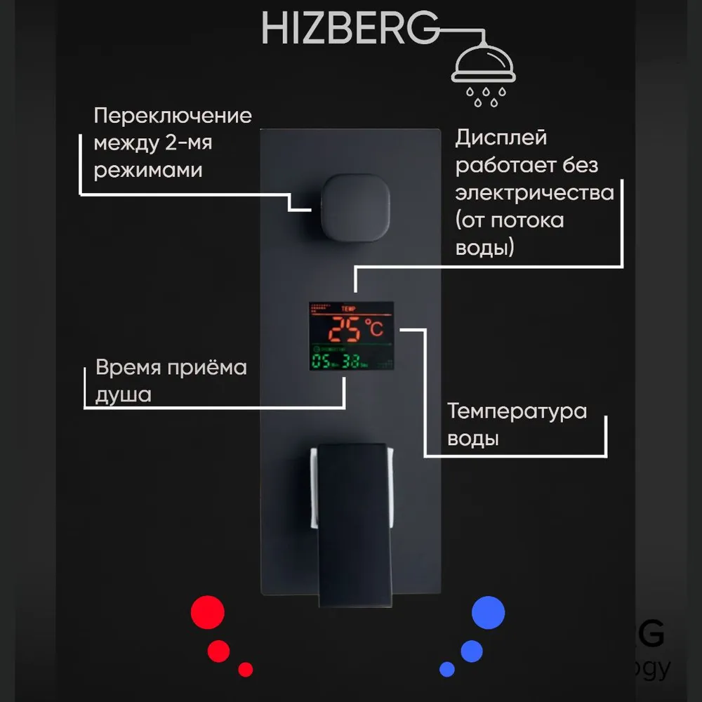 Душевая система скрытого монтажа с цифровым дисплеем имеет продуманную эргономику минималистичный дизайн, благодаря чему гармонично впишется в интерьер любой ванной комнаты. Цифровой дисплей, встроенный в данный душевой комплект, показывает температуру воды, режим струи и помогает следить за временем. Продуманная конструкция, встроенный керамический картридж и специальное износостойкое покрытие корпуса дают гарантию, что сантехника не утратит ни внешней привлекательности, ни своих функциональных качеств даже спустя длительное время. Система не нуждается в батарее или других источниках питания - цифровой дисплей питается потоком воды за счет гидроэлектрического генератора.