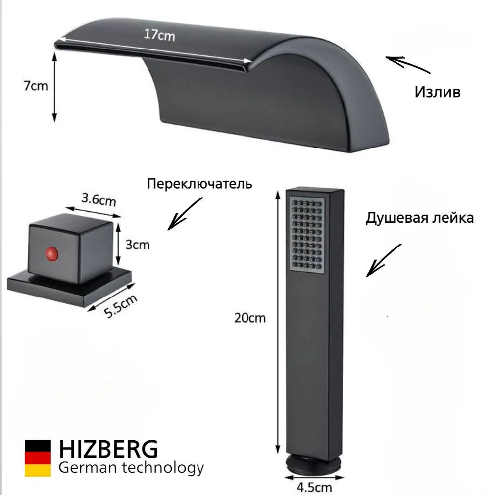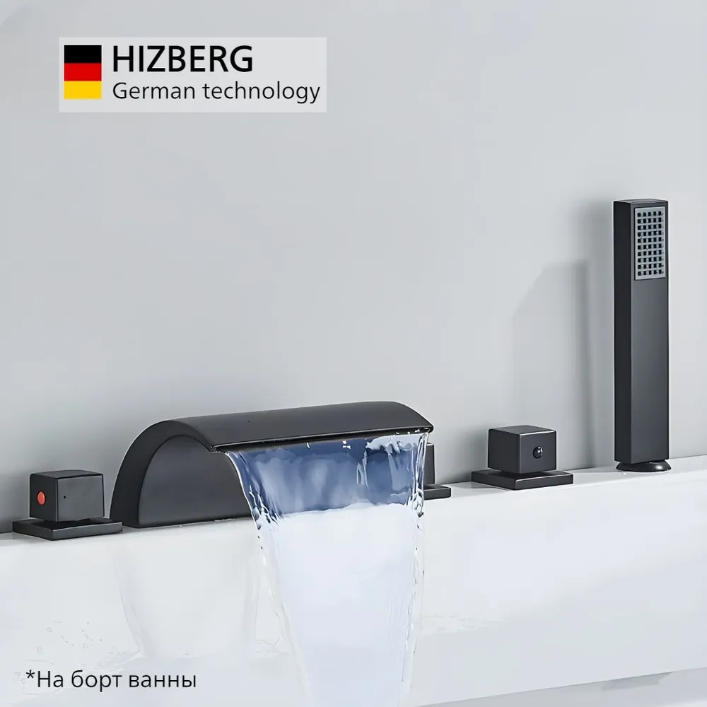 Смеситель на борт ванны - это отличное соотношение цены и качества. Благодаря современному дизайну излива и черному покрытию он отлично дополнят ваш интерьер. Излив имеет легкую подсветку, которая меняется в зависимости от температуры.