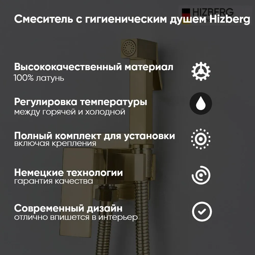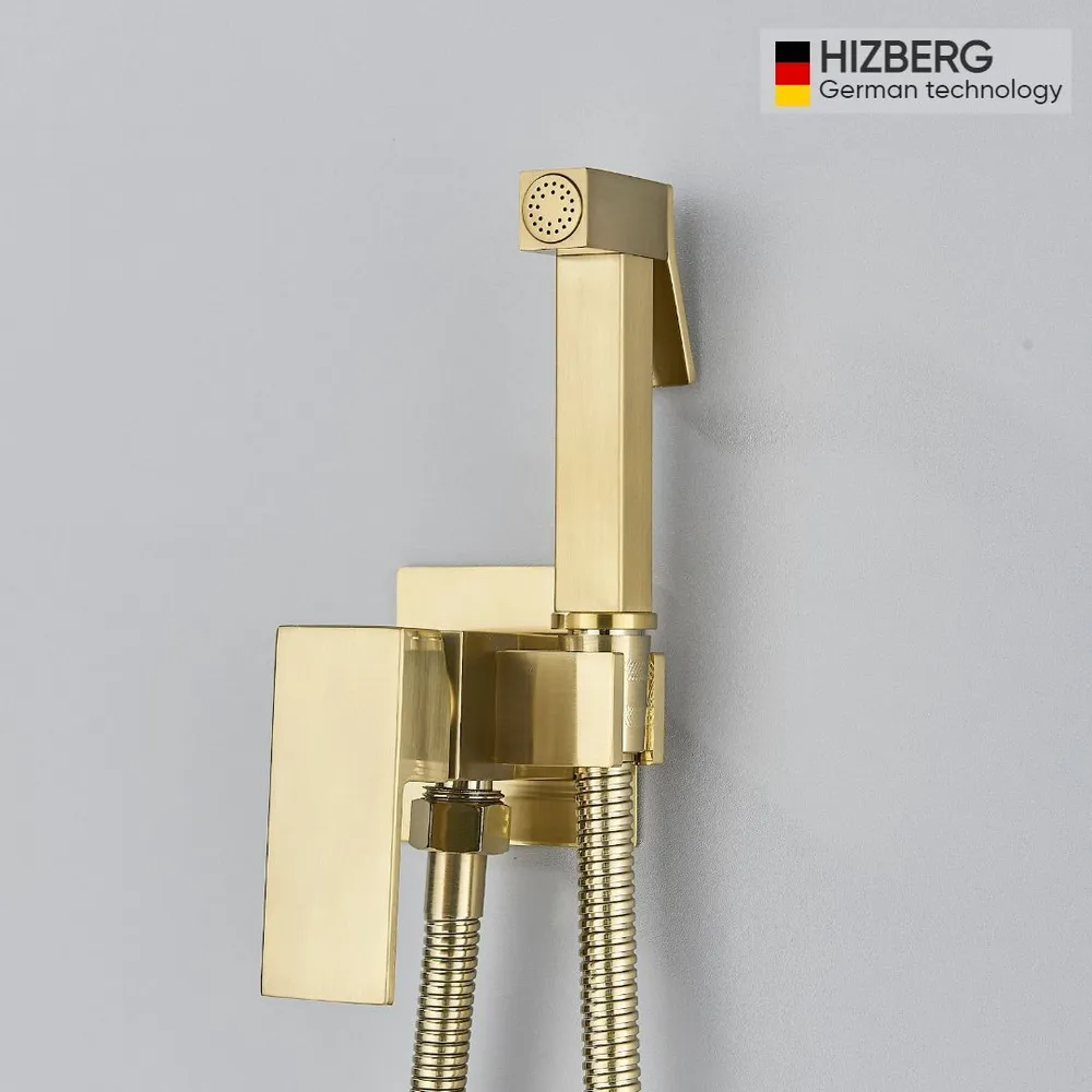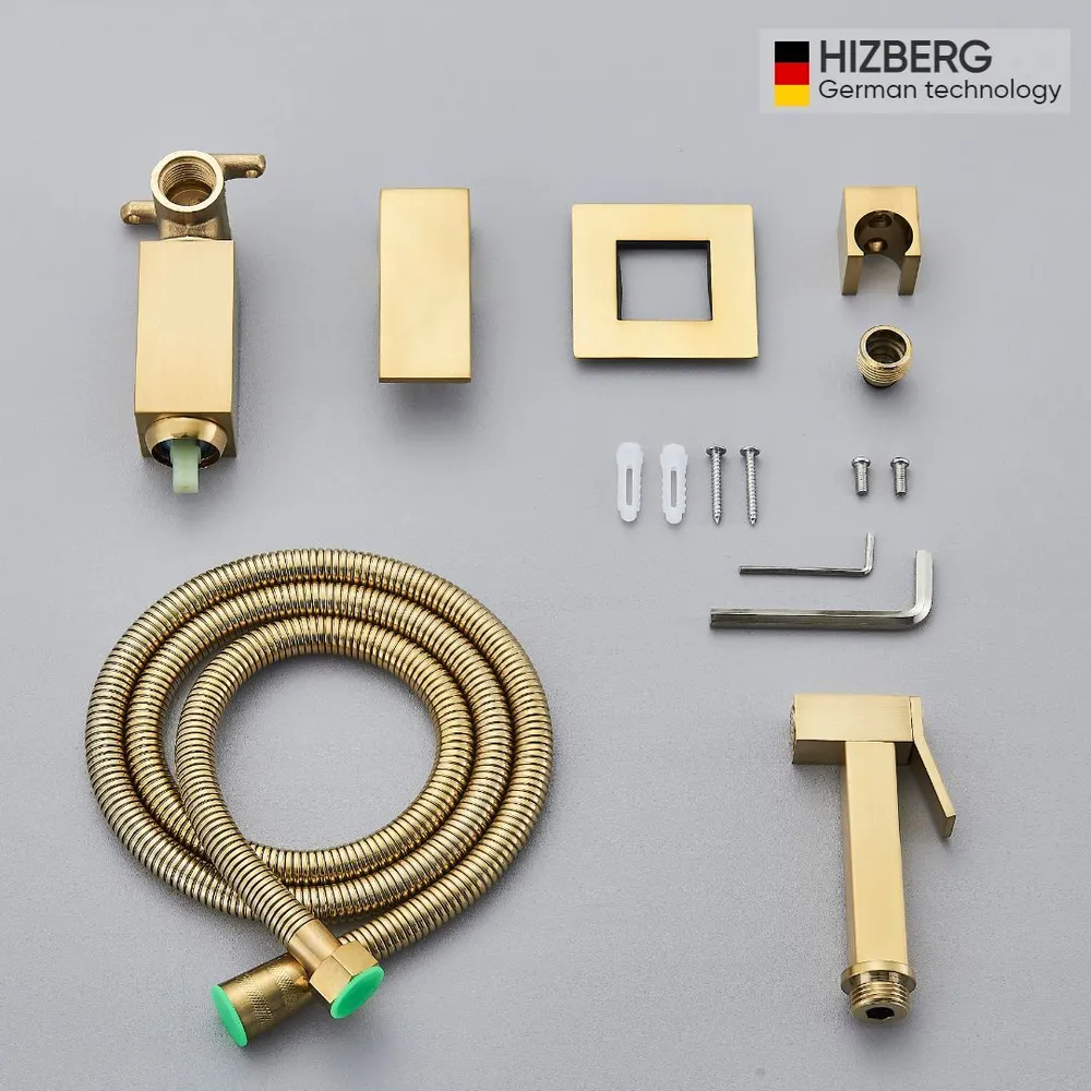 Смеситель с гигиеническим душем. У прибора одна рукоять для регулировки напора воды. Смеситель для санузла с гигиенической лейкой устанавливается прямо внутрь стены, что позволит скрыть функциональные элементы. Основной материал корпуса - латунь, проверенный временем материал, который обеспечивает идеальное напыление покрытия. Квадратная форма прибора делает его оригинальным и аутентичным. Смеситель для биде подходит для кухни или ванной комнаты, оформленных в необычном стиле. Модель не имеет излива. Комплектация: душевой шланг, гигиеническая лейка, внешняя часть смесителя, держатель гигиенической лейки на смесителе.